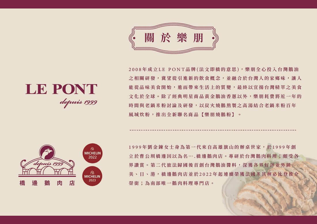 在未拜訪LE PONT前,HUG就已經為這罐「黃金鵝油香蔥」著迷,搭著我們的手工麵線,就是一餐簡單但是令人回味的料理。加上這罐「黃金鵝油香蔥」包裝的氣質出眾,讓人以為是法國進口的頂級調味醬料,不由得會想要好好的端詳他的說明,小心翼翼的品嚐他的滋味。包裝給人一個好印象,提高了價值感,最難能可貴的,是從頭到尾,都用台灣當地的食材製成。 |