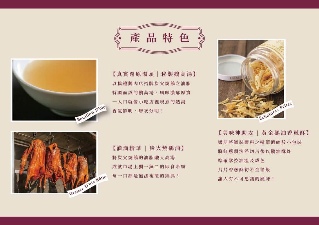 法國進口來的?是的,因為阿士哥曾經在法國波爾多留學四年。深受法國飲食文化吸引,尤其當他看到法國頂級料理使用鵝油,發現原來鵝油可以這麼美味,開啟了他對於鵝油的研究熱忱。阿士哥對於鵝油可是一點都不陌生,因為自家就是傳統的鵝肉店,那習以為常的食材,竟然隱藏著這麼深厚的學問,能做出這麼多美味的料理。 回國後,阿士哥把自家鵝肉店的鵝油調味品發揚光大,成了高雄仁武名物、日系頂級超市的暢銷品、網路團購熱門商品,您也許好奇,不就是罐「黃金鵝油香蔥」,台灣古早就有的老味道,哪來那麼稀奇? 「油蔥」是不稀奇,但是當吃過這樣紮紮實實的「黃金鵝油香蔥」,真的好──令人回味。用「紮紮實實形容他,是因為每一個細節,您都可以感受到他們的用心。注重細節讓他們成功,讓這罐「黃金鵝油香蔥」紅遍台灣,更是紅到國外去。 做鵝油香蔥的細節在哪裡:第一關鍵是紅蔥頭,光是對這個香蔥的講究,阿士哥開玩笑說,連蔥農都怕他,不好就請他們整批載回去,所以到了後來,今天採的不夠好,蔥農也不送貨了,省的白跑一趟。為何能夠與蔥農有這麼好的合作默契?阿士哥說為了維持品質,我們與蔥農「契作」。 |