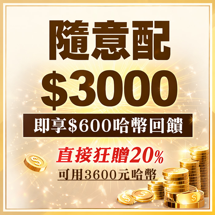 ■ 贈送 NT$600 哈幣(共獲得$3600哈幣)。