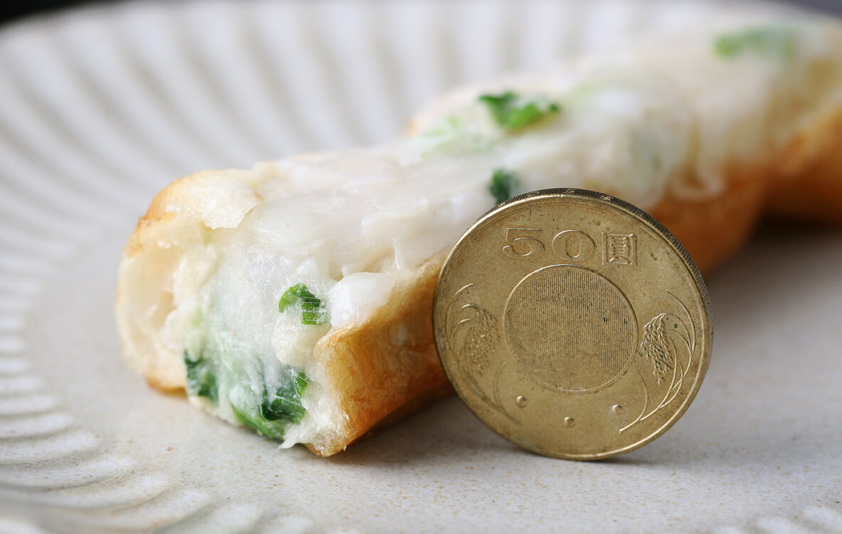▼ 以新鮮花枝漿與蝦仁漿,手工鑲填入油條中,酥脆油條搭配鮮美花枝蝦漿,可用油煎炸或是入氣炸鍋調理,口感香酥、鮮甜美味!