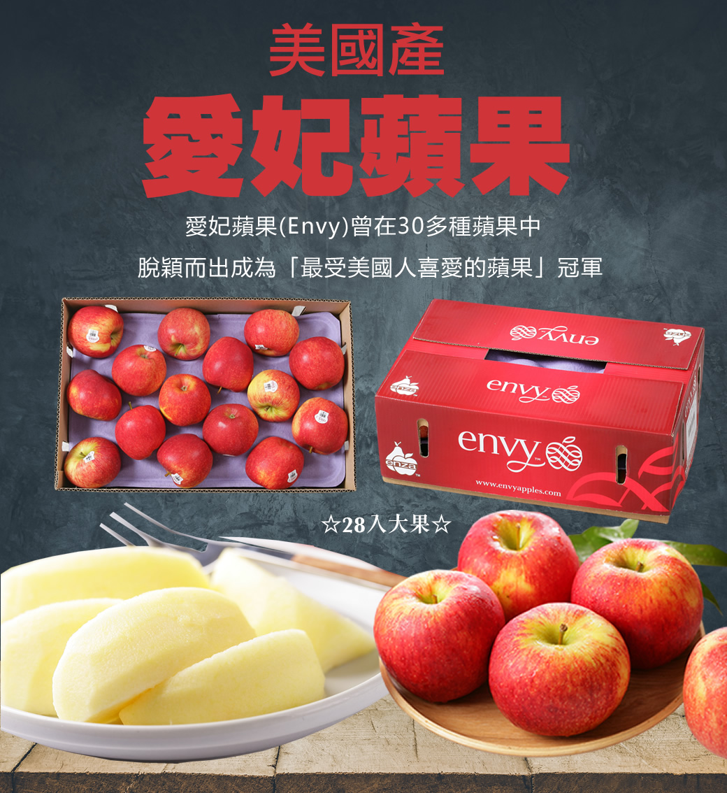 ■ 送大果㊣美國Envy愛妃蘋果(大果)24-28入/9公斤原裝箱