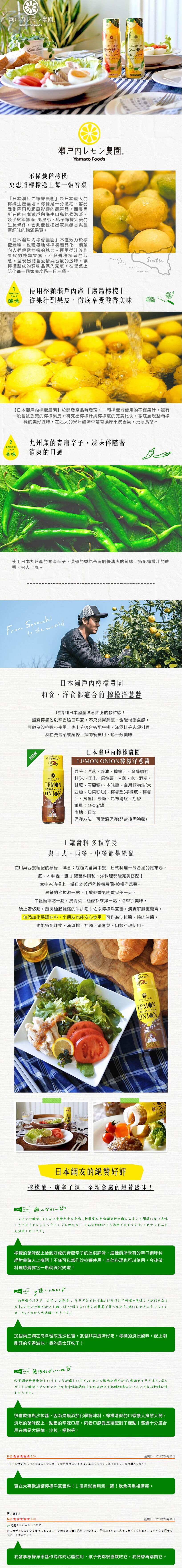 | 品名: | 【瀨戶內檸檬農園】LEMOSCO檸檬洋蔥醬 | ||||||||||||||||||||||||
