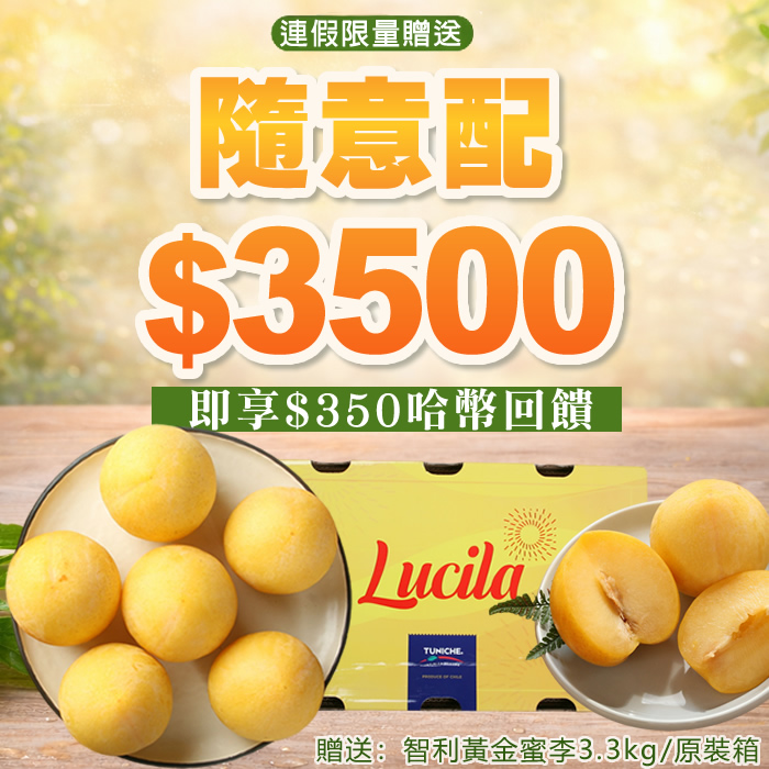 【連假限量送】HUG 隨意配(購買NT$3500,即得$350哈幣回饋)+贈智利黃金李3.3kg/原裝箱