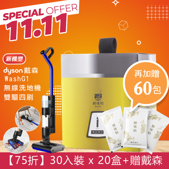 【20盒優惠組】75折+贈60包+加贈戴森 WashG1 無線洗地機|鱸魚精萃30入x20盒(60ml/包)