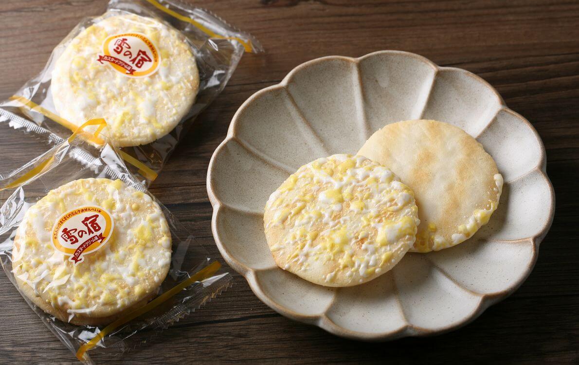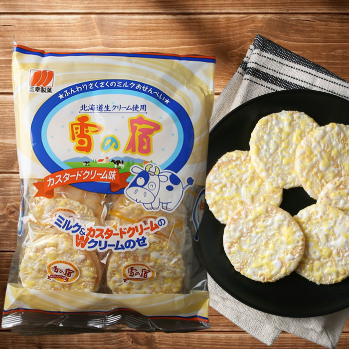 | 特色: | ■ 以日本米以及北海道奶油蛋黃製作而成,溫和的甜味和鹹味的完美和諧。 ■ 餅乾口感酥脆,滋味鹹鹹甜甜適口性極佳,是款歷年不敗的經典雪宿餅乾。 |