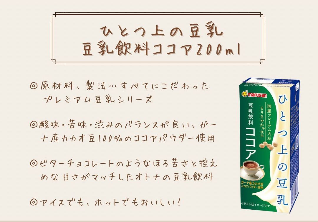 | 成分: | 水,大豆,糖類(葡萄糖果糖液糖,果糖,砂糖),焦糖漿(砂糖),可可粉,玉米澱粉分解物,食鹽,碳酸氫鈉,香料,粘稠劑(玉米糖膠,結蘭膠)乳化劑(脂肪酸甘油酯,脂肪酸蔗糖酯) | ||||||||||||||||||||||||