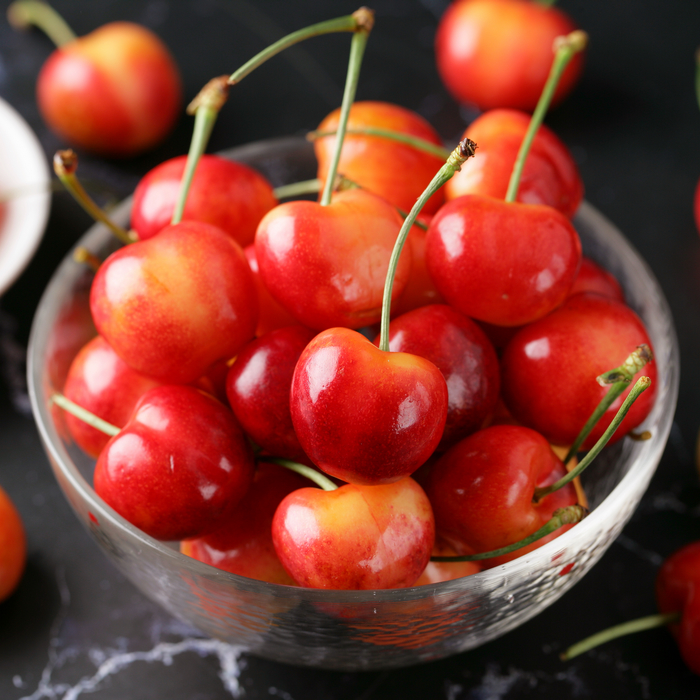 ■ 產量稀少,滿滿糖斑,白櫻桃(Rainier)是非常獨特的櫻桃品種,金黃外觀帶著粉紅,果肉細緻飽滿,甜度高居所有櫻桃之冠,堪稱「櫻桃皇后」。