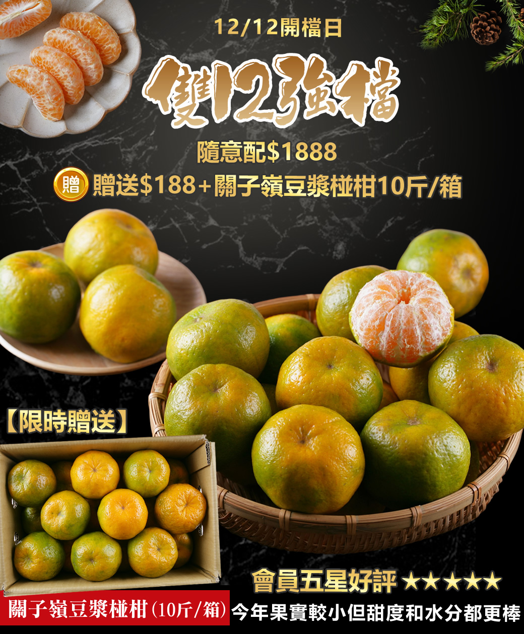 雙12強檔贈送 關子嶺豆漿椪柑10斤/箱
