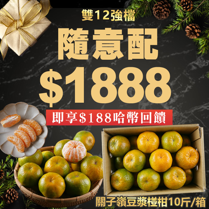 【雙12強檔】HUG 隨意配(購買NT$1888,即得$188 哈幣回饋)+贈關子嶺豆漿椪柑10斤/箱