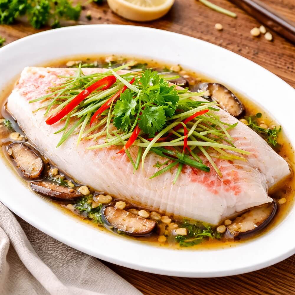 | 特色: | ■ 台灣鯛魚片以精緻養殖技術聞名,魚肉緊實細嫩,入口鮮甜無腥味,完全沒有傳統吳郭魚的土味困擾。 ■ 於海水或半鹹水養殖環境,讓魚肉更具彈性與清爽風味。急速冷凍保留了原始鮮度,解凍後依然保持自然的海洋香氣。 ■ 烹調時,無論清蒸、香煎或入鍋煮湯,都能展現柔嫩卻不易散碎的質感。 ■ 潮鯛魚片的美味在於清爽甘甜,帶有淡淡的海洋鮮香,口感滑順而富有層次,既能襯托清淡料理的純粹,也能與濃郁醬汁相互融合,成為餐桌上兼具健康與美味的佳選。 |