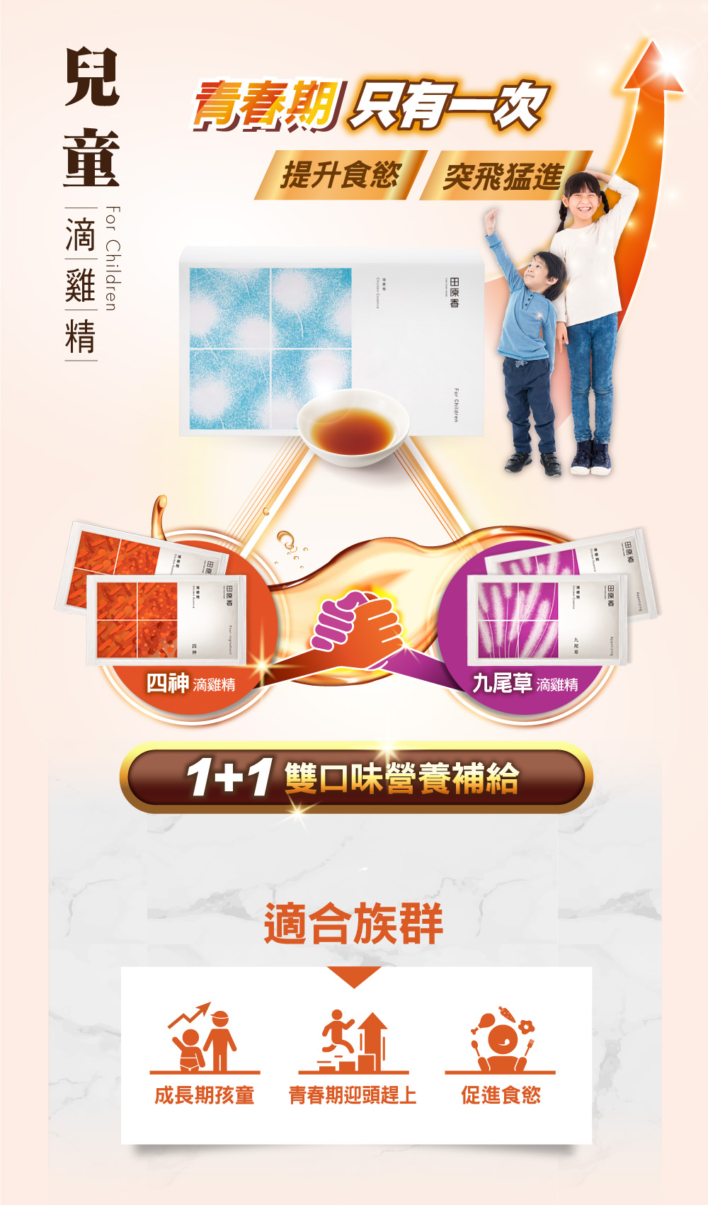 ■ 專為三歲以上兒童設計的「兒童滴雞精」,穩固體質打好底!