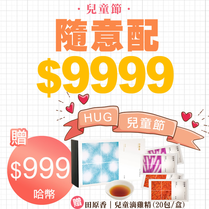 【兒童節】HUG 隨意配(購買NT$9999,即得$999 哈幣回饋)+贈田原香|兒童滴雞精(20包/盒)