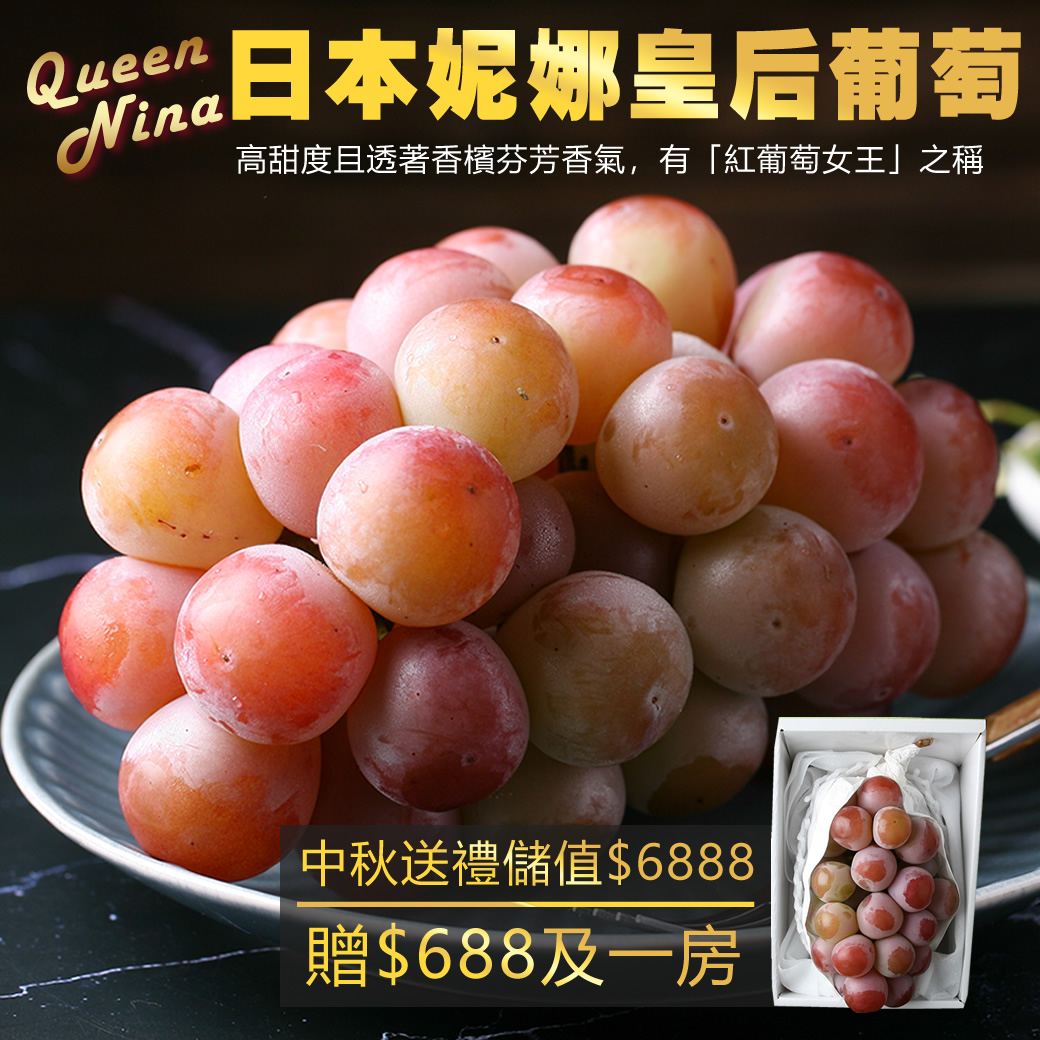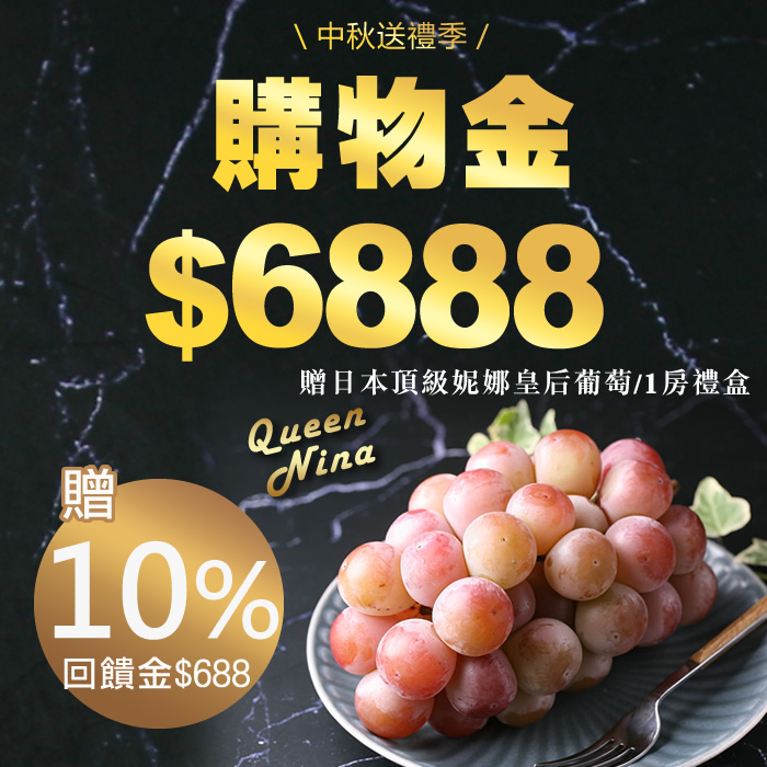 【中秋送禮季】HUG購物金$6888(加贈$688)+贈日本妮娜皇后葡萄/1房(約600g~700g)