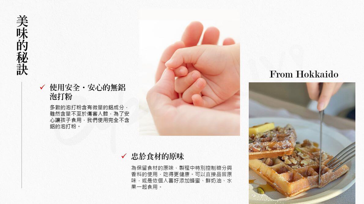| 特色: | ■ 來自北海道的品牌「NORTH FARM STOCK」。 ■ 嚴選使用北海道的在地天然食材,安心美味。 ■ 鬆餅粉選用道產的白脫牛乳、小麥製成。 ■ 搭配使用安全安心的無鋁泡打粉作為膨脹劑。 ■ 製程中特別控制糖分與香料的使用,追求保留食材原味。 |