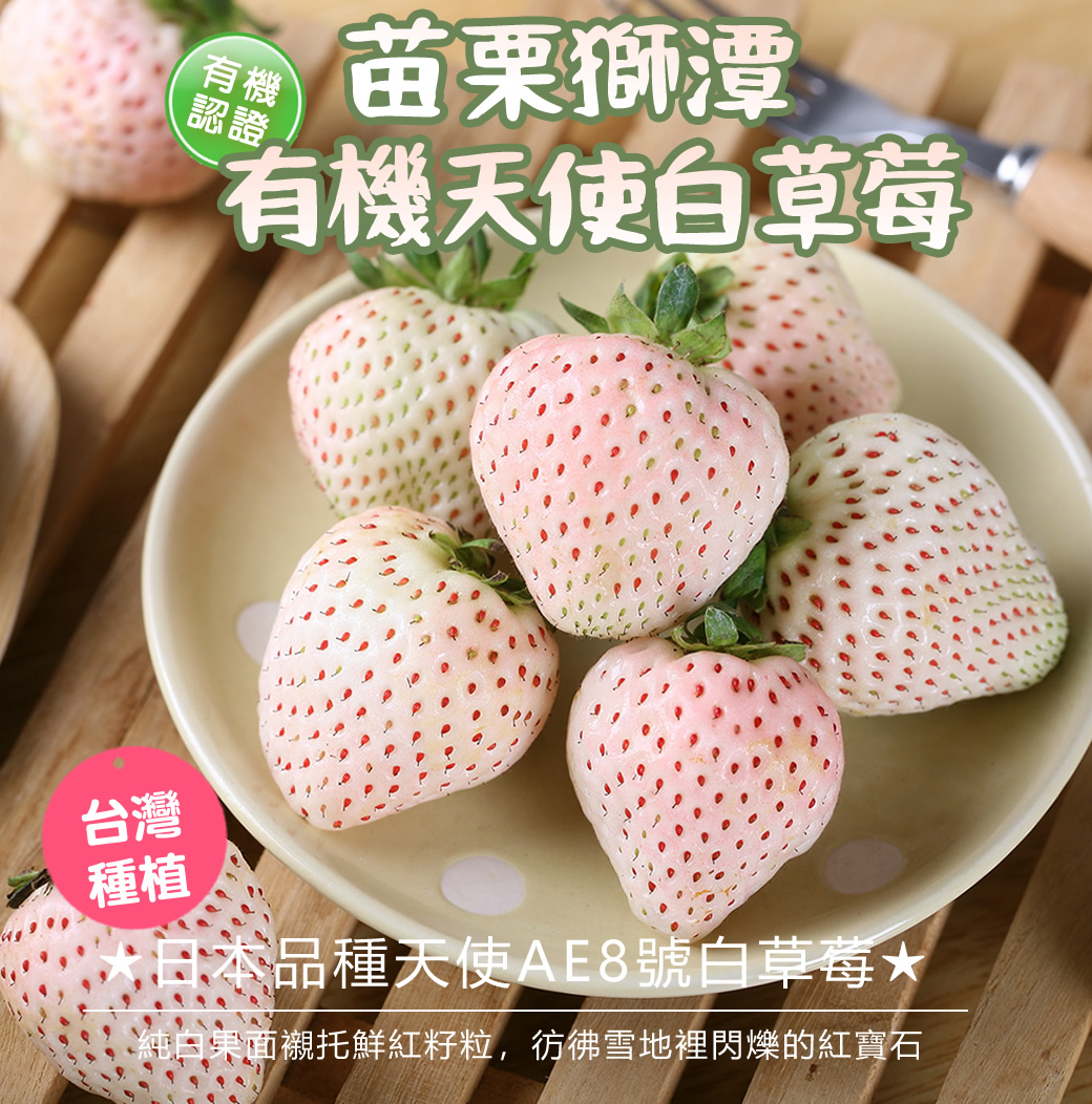 贈送苗栗獅潭種植 有機天使白草莓20顆(2盒)/箱