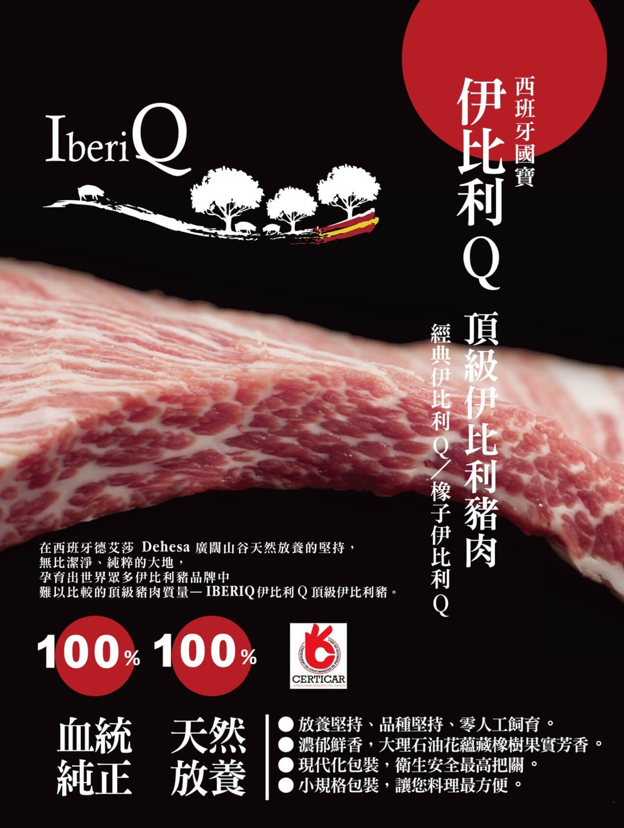 | 特色: | ■ IberiQ所飼養的伊比利豬不僅擁有天生基因優勢,足夠的運動量、攝取天然均衡的橡果、香草,讓伊比利豬的肉質產生肌肉與脂肪的完美比例與絕佳風味。 ■ 肋眼蓋又被稱作老饕肉,取自肩部和里肌中間二塊三角形的片狀肉,是豬肉最好的部位之一,脂肪含量較多、口感十足,不需過多的調味,就能享受其肉質的嫩度、 多汁和獨特香氣。 ■ 歐洲夢幻食材之一,肥育超過15個月,食用牧場私家穀物飼料、香草、橡實等等,肉質鮮甜無腥味,特別推薦給不能吃牛肉,卻想要品嘗如同高級牛排般多汁香甜的朋友們! |