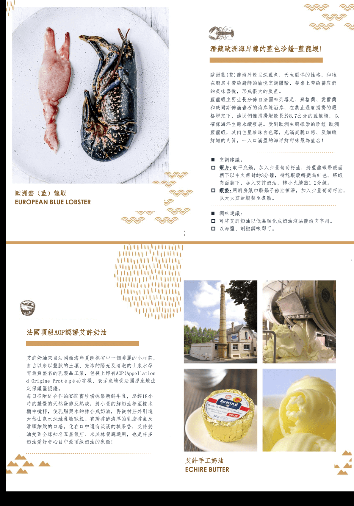 ‧ 歐洲藍(螯)龍蝦:爽脆口感+細緻鮮嫩的肉質!