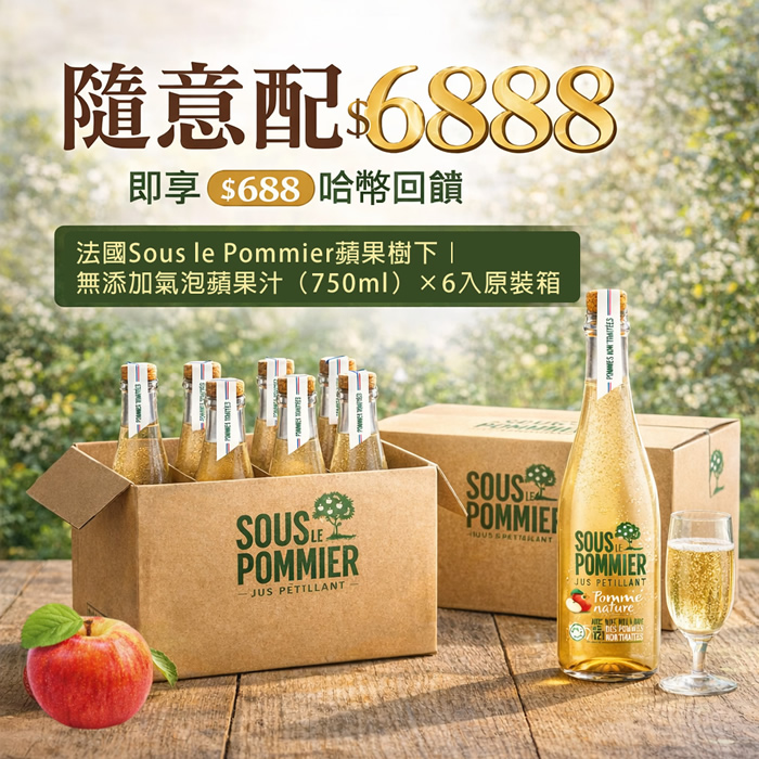 - 【法國直送新品】HUG隨意配(購買NT$6888,即得$688哈幣回饋)+贈 【原裝6入】法國蘋果樹下氣泡蘋果汁(750ml)
