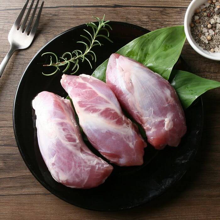▼飼料原料皆經膨化機高溫、高壓、熟化,再加上胜肽蛋白、乳酸菌、維他命、礦物質、麩皮等等營養品,讓豬隻容易消化吸收;歷經7~8個月飼養,豬隻的風味最為成熟,肌間脂肪豐富,肉質飽滿,鮮甜味美。 |