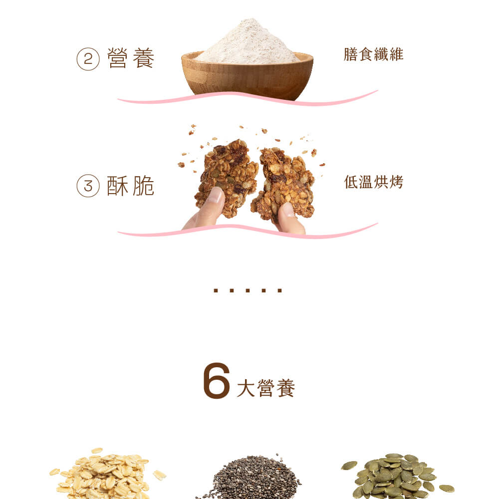 | 特色: | ■ 使用嚴選食材,堅持低溫烘烤,保留食材營養原味,創造輕纖美味與獨特酥脆。 ■ 增添奇亞籽、雙效分解酵素、以及日本專利水溶性膳食纖維,讓美味纖巧無負擔,滿足每個零食時刻。 ■ 採用專家嚴選黑芝麻,低溫慢炒甘甜香,保留完整芝麻營養。 |