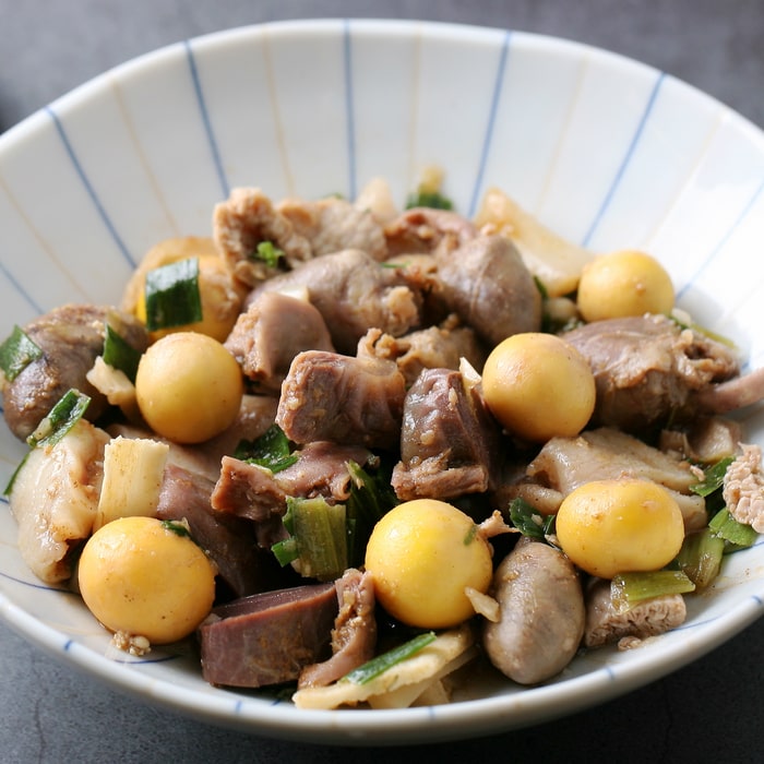 | 成分: | 雞心、雞胗、雞冠、雞腸、雞卵、脆筍干、蔥、薑、蒜泥、白芝麻油、黑芝麻油、雞油、雞湯(雞肉、水)、 味精、食鹽、黑胡椒、白胡椒、五香粉(桂枝粉、肉桂粉、花椒粉、小茴香粉、甘草粉)、山葵粉、蒜粉 |