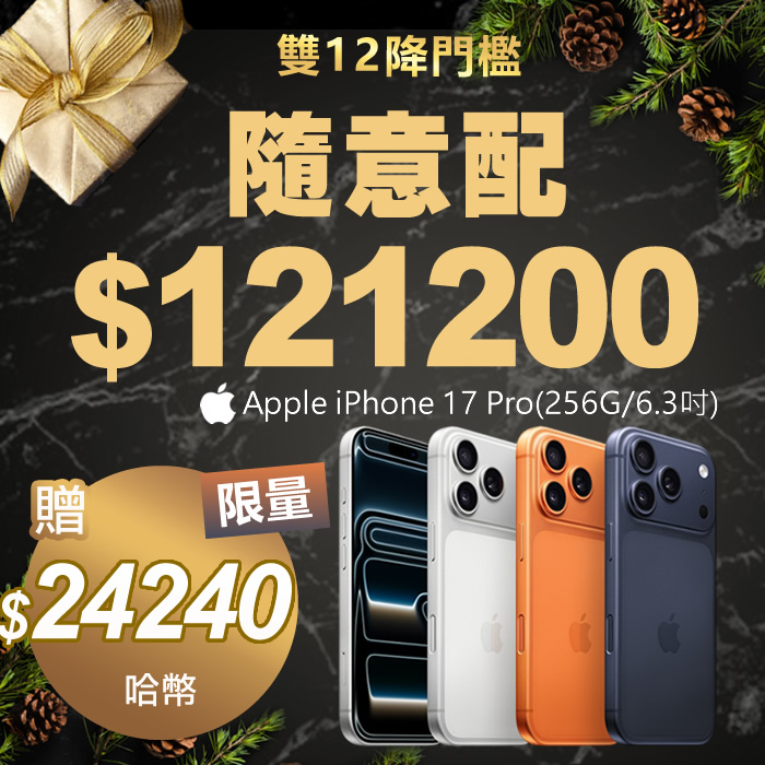【雙12降門檻】HUG隨意配(購買NT$121200,即得$24240 哈幣回饋)+加贈★蘋果Apple iPhone 17 Pro (256G/6.3吋)