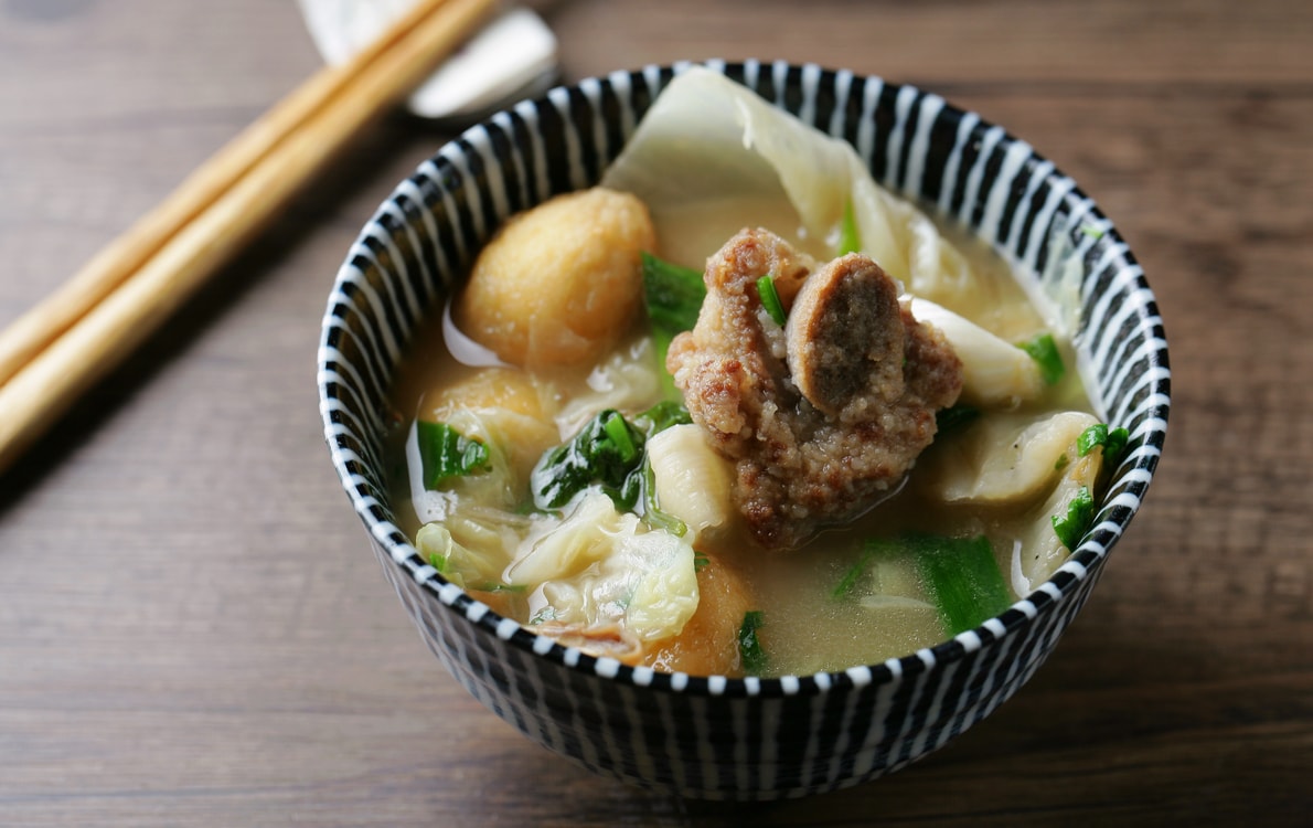 ▼以豬腳、水翅、排骨、芋頭、肚絲、栗子、香菇、鳥蛋、紅棗、大白菜等等豐富食材一同煨燉,香濃湯頭入口溫醇回甘。豐富用料但又不使湯頭油膩濃稠,反而是清爽香醇的口感。