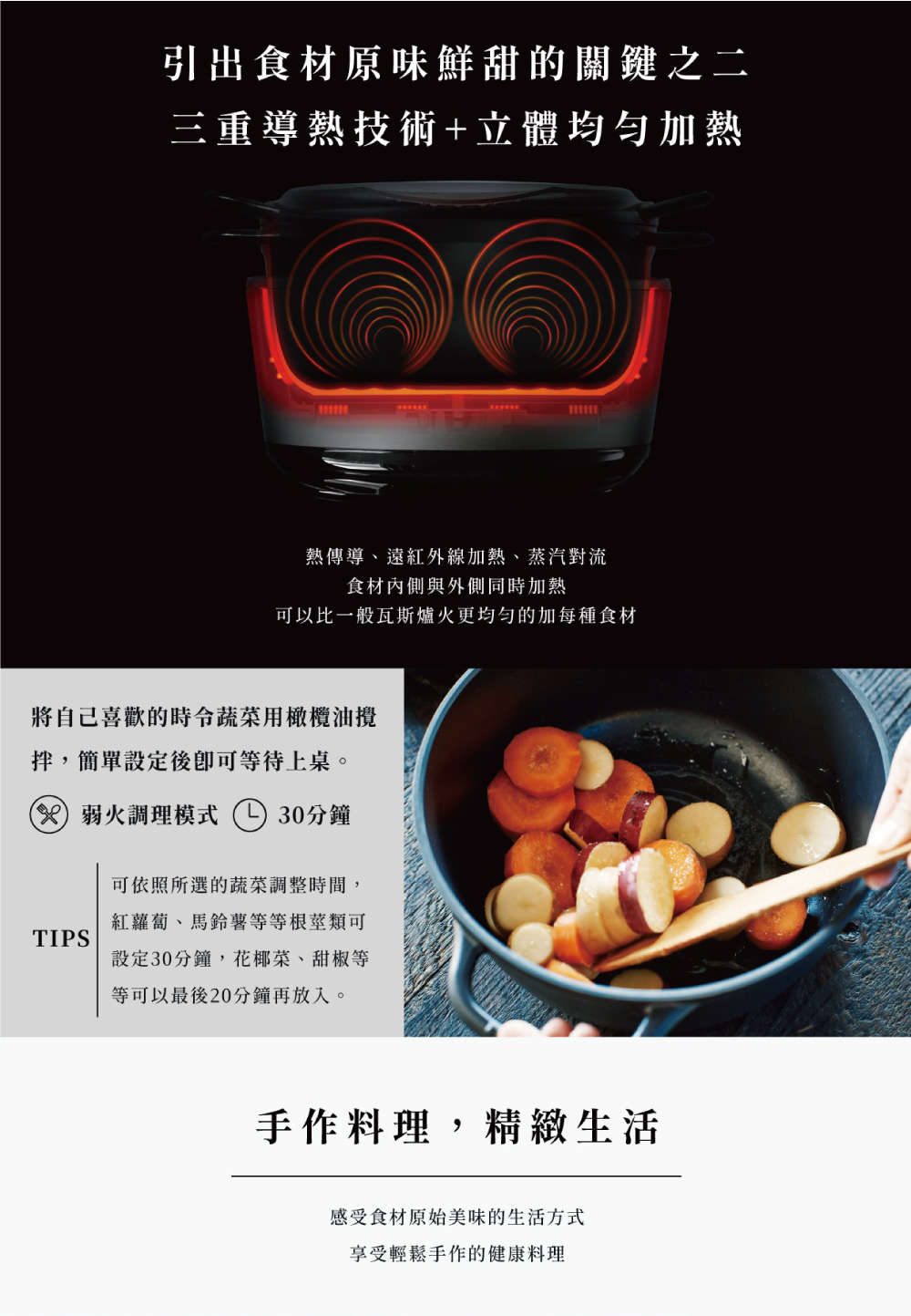 ★三重熱傳導技術,不加一滴水也能引出食材甘甜美味