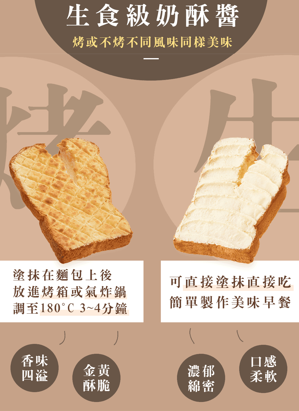 ■ 以頂級法國無水奶油、紐西蘭進口奶粉為主要原料。