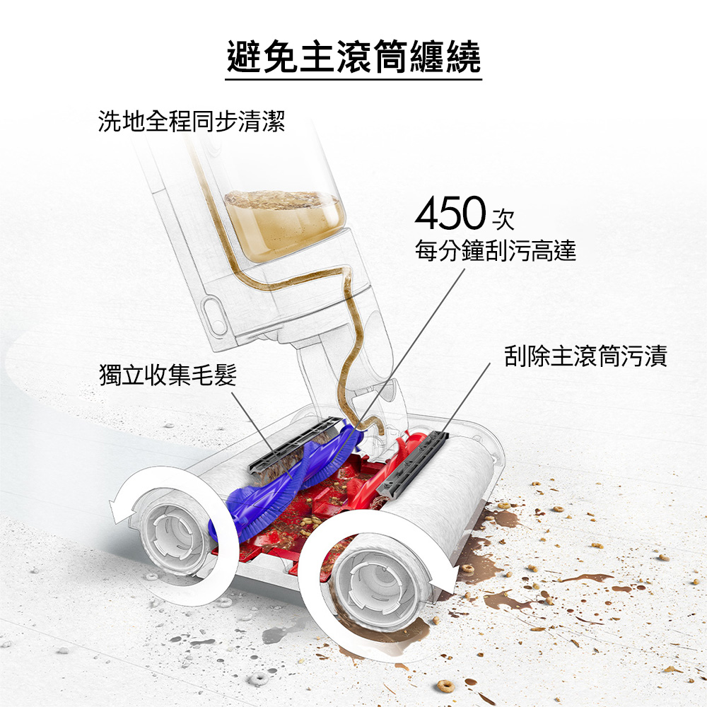 Dyson 首款結合吸塵與洗地科技的旗艦新品,搭載創新「雙驅四滾刷系統」,前後對轉同步清洗並吸除污水,讓地面瞬間潔淨乾爽。乾淨水與污水全程分艙運作,確保每一次拖地皆使用清水。使用後一鍵自動清潔與風乾滾刷,免手洗更衛生。智慧感應系統會依髒汙程度自動調整水量與吸力,LED 螢幕即時顯示清水與電量狀態。無線設計輕盈靈活,續航長達 35 分鐘。Dyson WashG1,專為追求完美潔淨的家庭打造。