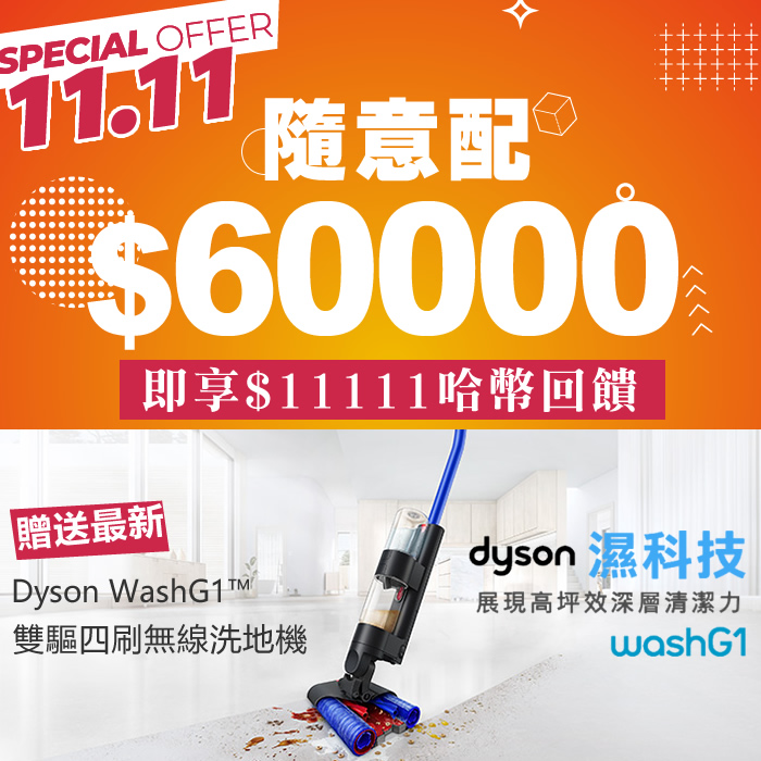 【雙11】HUG隨意配(購買NT$60000,即得$11111 哈幣回饋)+贈 dyson 戴森 WashG1 雙驅四刷無線洗地機(全新上市)