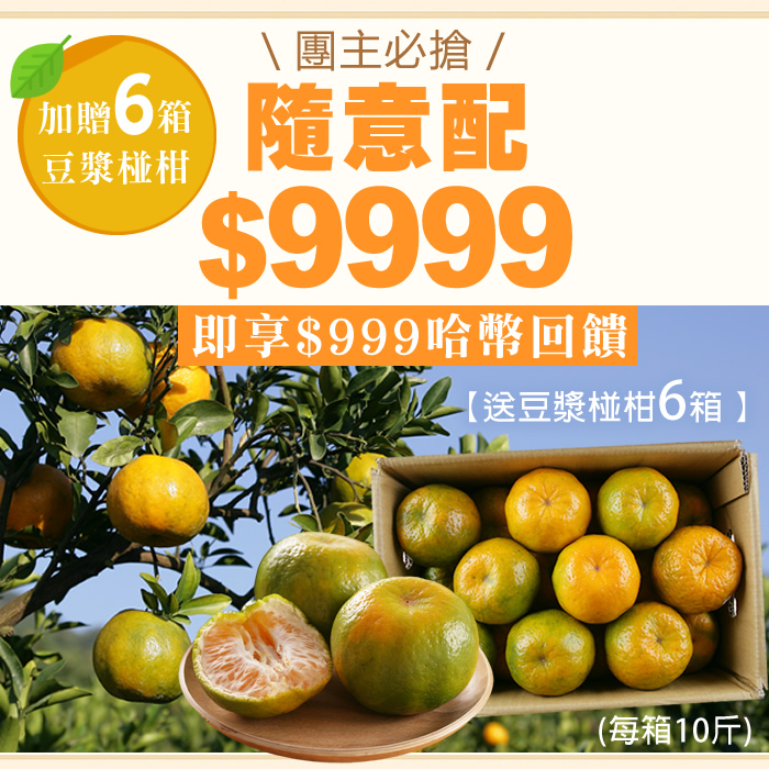 HUG隨意配(購買NT$9999,即得$999哈幣回饋)+贈【6箱】關子嶺豆漿椪柑10斤/箱(11月中上旬採收)