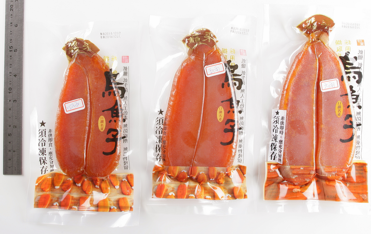 ▼ 每一尾烏魚經過3年的海水養殖而成「三齡烏魚」魚卵,卵體肥厚飽滿。 |