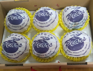 其中表現培育成果極好的黃金梨,事實上是源自韓國。韓國園藝實驗場於1984年育成的新品種,屬砂梨系統,因果皮呈金黃色而得名。 該品種對栽種管理要求較高,必須套袋栽培,被稱之為“貴族”高檔梨,也被認為是最優良梨品種之一。 黃金梨果皮呈透明狀黃金色,果面潔淨,果點小而均勻,外觀華麗。 果實最重可達800克以上;果核特別小,乳白色果肉,肉質細脆,多汁,香甜,完熟後含糖量可達14.7度。 果味清香,口感極佳,冷藏後食用,風味更佳,品質極上等。 |