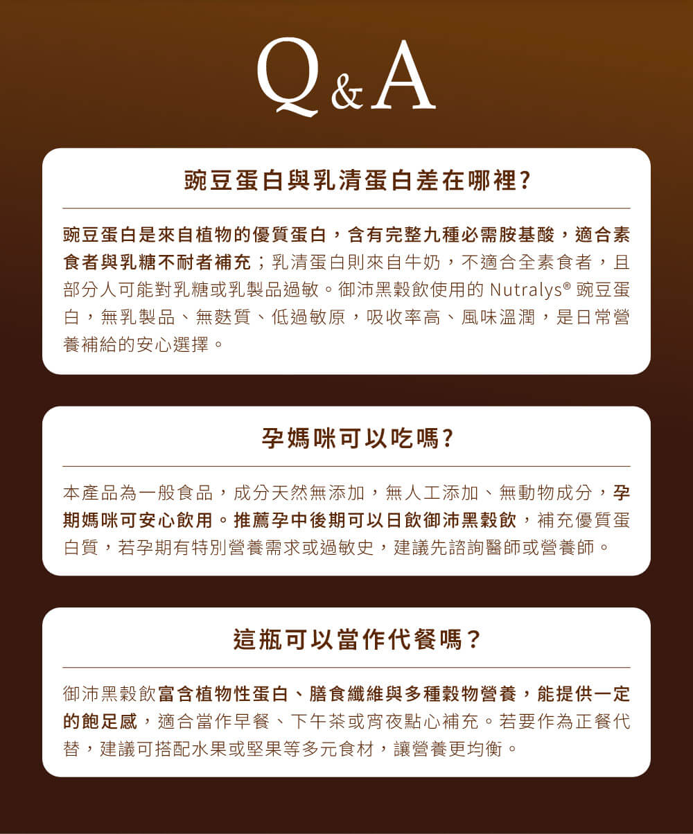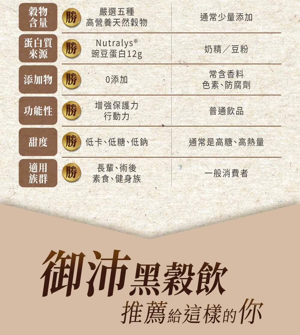 | 成分: | 水、豌豆蛋白、冰糖、黑米、黑豆、燕麥仁、紅薏仁、紅藜麥、黑芝麻、β-聚葡萄糖(wellmune) | |||||||||||||||||||||||