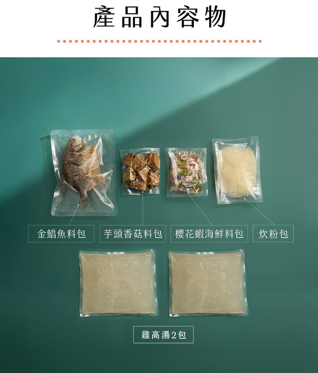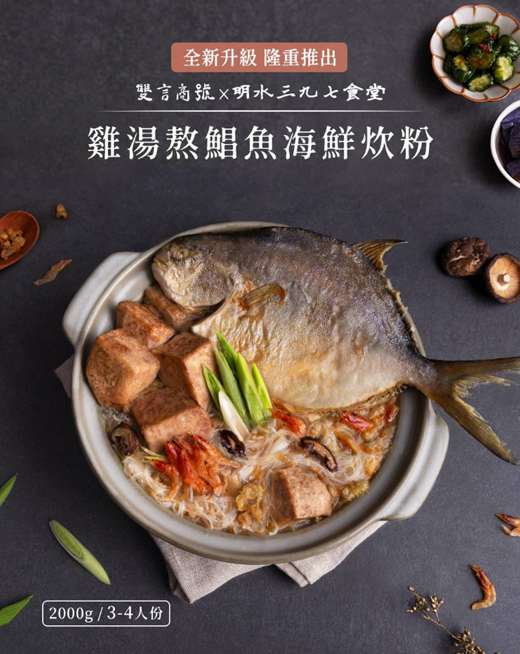 | 特色: | ■ 升級版「雞湯熬鯧魚海鮮炊粉」,採用整條鮮凍鯧魚,結合東港櫻花蝦、大甲芋頭、新竹炊粉、南投香菇、宜蘭蒜苗、AAA級蝦米…等可溯源食材。 ■ 加上秘制雞高湯為基底,完美融合各食材的鮮甜,成就了一道讓人垂涎欲滴的美味佳餚,一口接一口是種回到家的安心美味,是單純鮮甜鮮香濃郁的媽媽味。 |