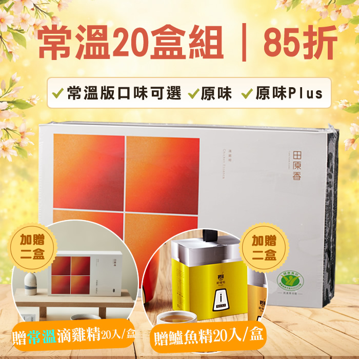 【20盒85折】常溫|滴雞精20包/盒(無藥材、原味Plus可選擇)+贈送常溫滴雞精和鱸魚精共4盒
