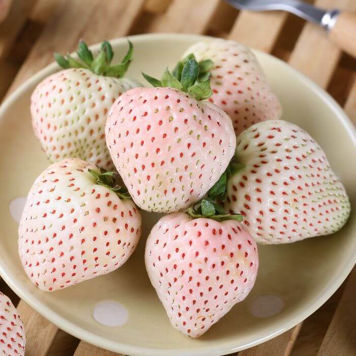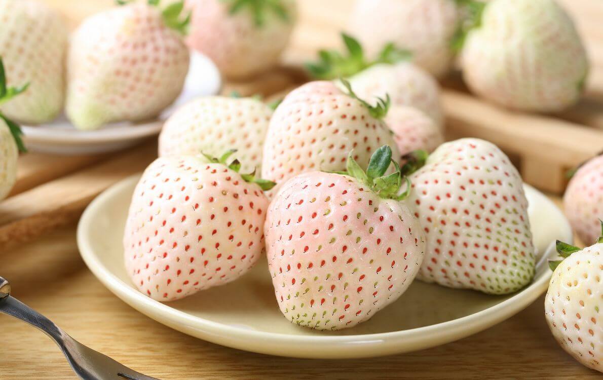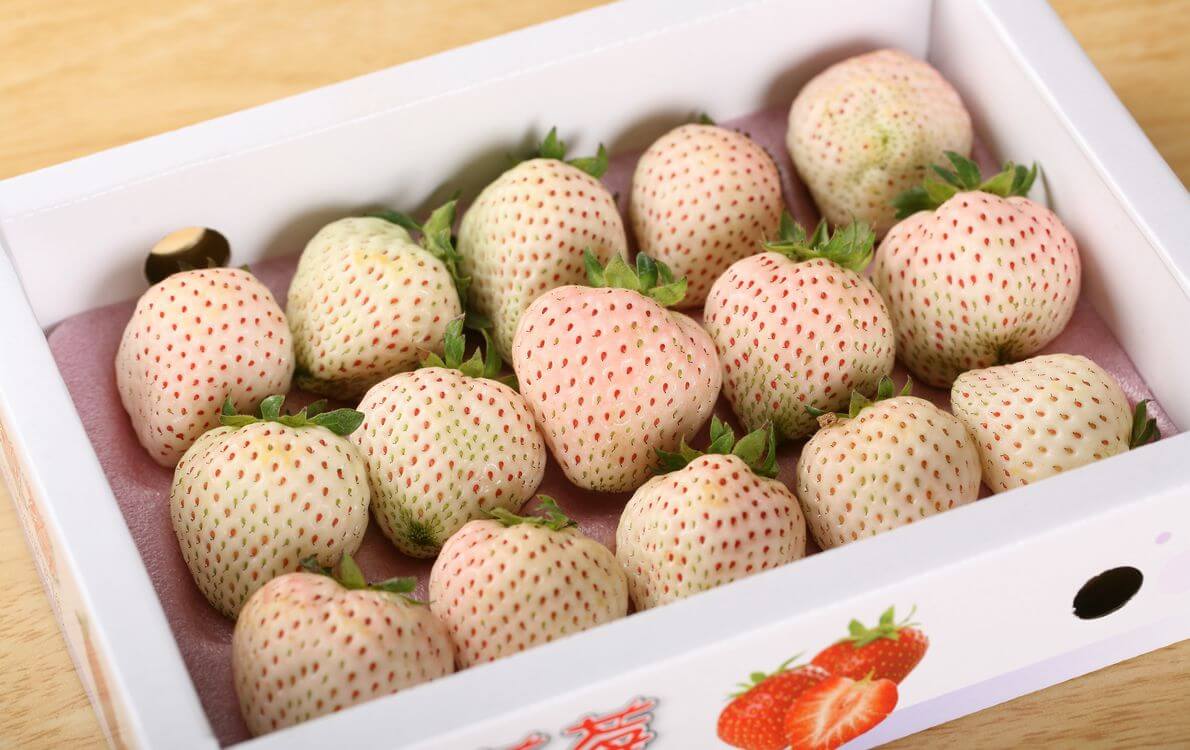 ■ 日本品種【天使 AE8 號白草莓】純白果面襯托鮮紅籽粒,彷彿雪地裡閃爍的寶石,稀有而迷人。