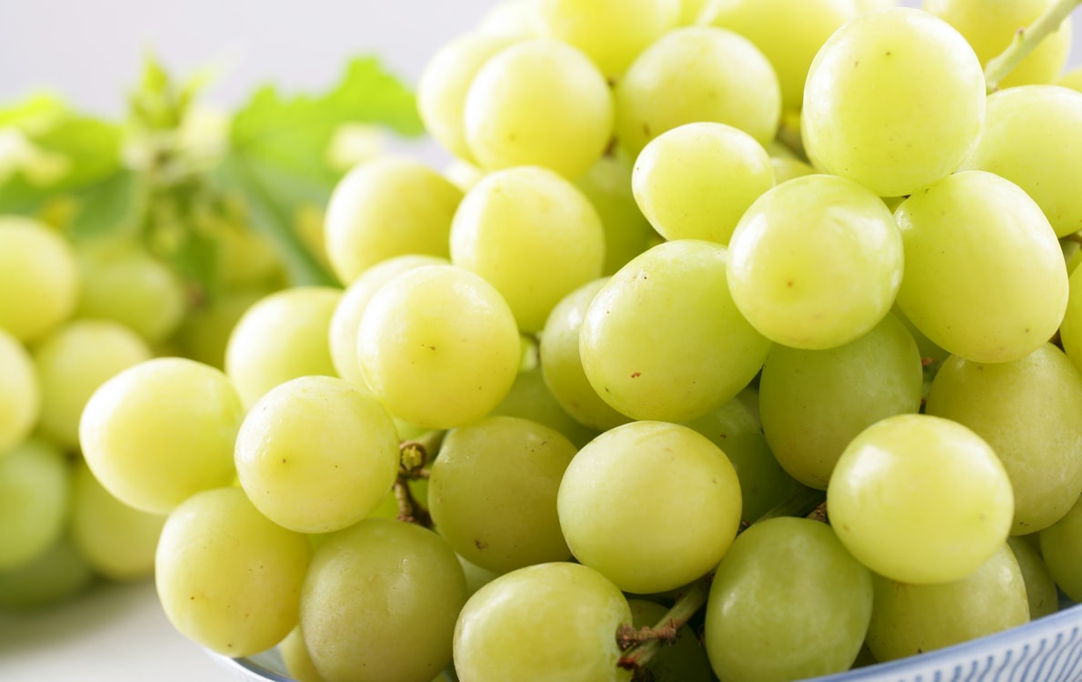 ▼秋脆綠無籽葡萄:果粒大而飽滿,皮薄多汁甜度高
