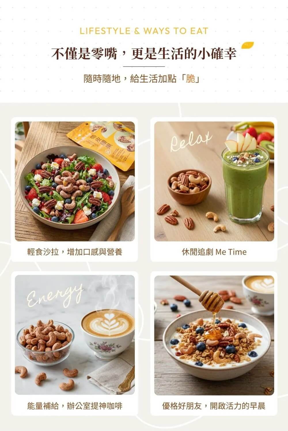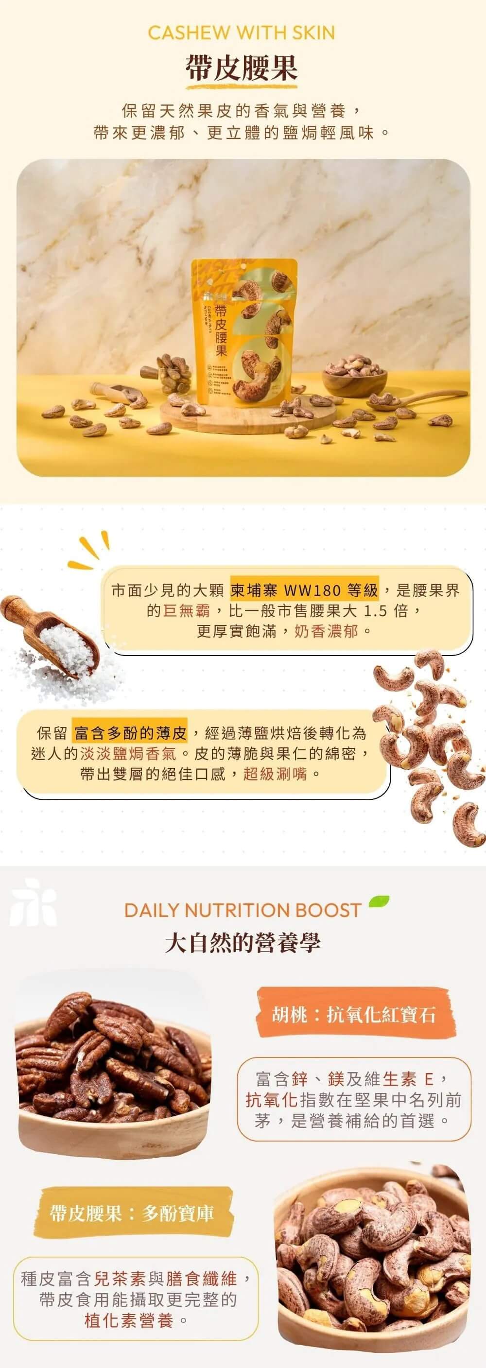 | 產地: | 台灣。(腰果產地:柬埔寨) | |||||||||||||||||||||||