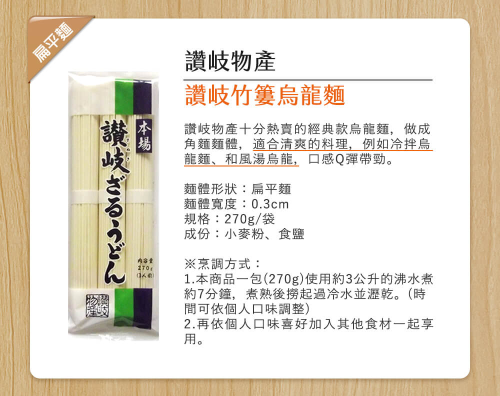 - 【日本讚岐物產】讚岐竹簍烏龍麵(角麵)/270g