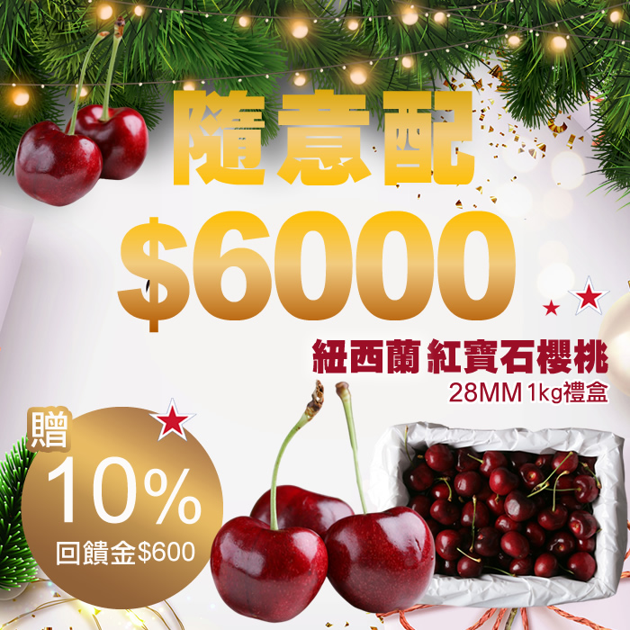 【紐西蘭櫻桃季】HUG隨意配(購買NT$6000,即得$600 哈幣回饋)+贈紐西蘭空運櫻桃28mm/1kg禮盒